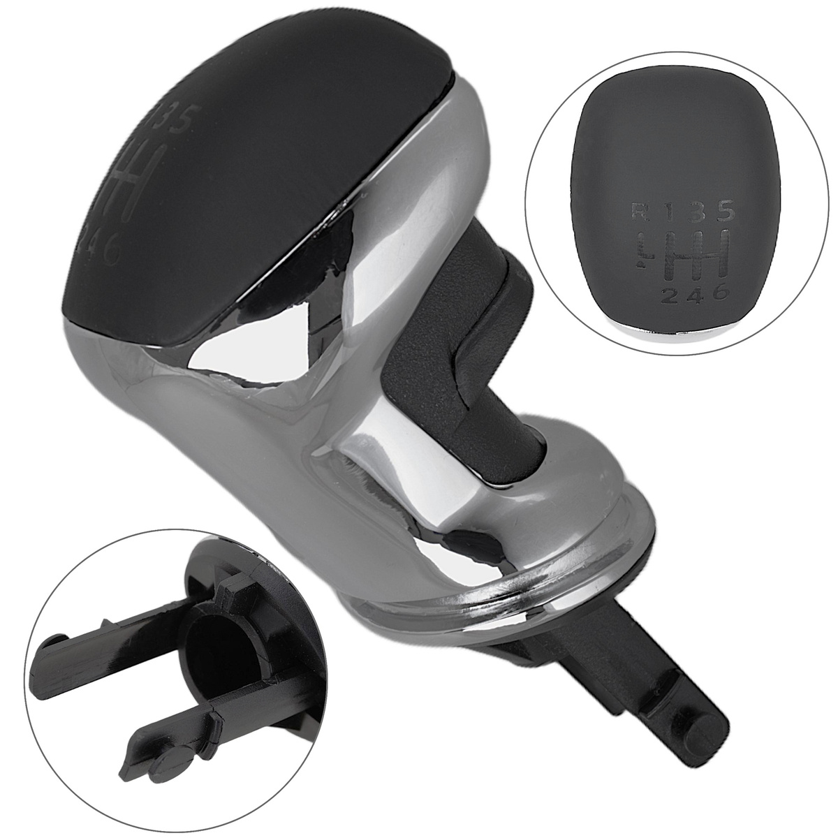 Kolor gałki: chromowana z czarnymi elementami, schemat czarna ekoskóra z tłoczonymi symbolami